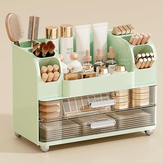 Nice storage for the money. Pockets a little small and shallow. Held all of my daily use make up. Did help me realize I have WAY too MUCH that I don’t ever wear. It was great for decluttering and only keeping the essentials. I do wish the plastic was a little thicker but the amount it holds and depth of the drawers make up for it. WORTH IT LINK: https://amzn.to/4sViqm0
